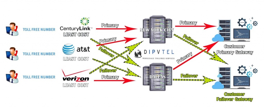 When a company decides to buy toll-free service from DIPVTEL, we guarantee zero downtime and here is why. We load our customer TFN on each carrier but if our customer is already using one of our suppliers, we set up routing initially on one or 2 of the carriers not currently being used.